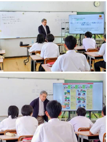 濱口理事長特別講座、防災出前授業を和歌山県白浜町立三舞中学校と日置中学校で実施しました。