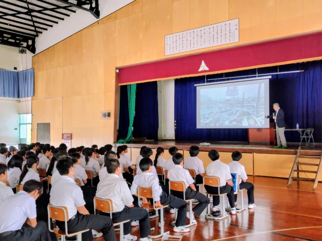 和歌山県白浜町(2日目)防災出前授業の講師を担当 投稿日 2025年9月25日 更新日 2025年10月3日 著者 事務局 カテゴリー お知らせ 和歌山県白浜町(2日目)。昨日に引き続き、防災アドバイザーを務める白浜町で、白浜中学校(94人)、富田中学校(252人)の生徒を対象に防災出前授業の講師を担当。 カスタード&生クリームの『生かげろう』を堪能‼️